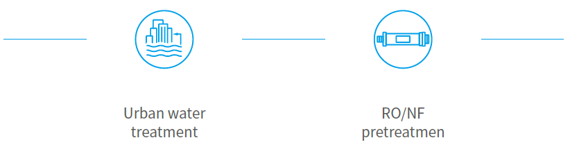Excellent effluent quality: Narrow membrane pore size distribution, high filtration precision, effluent turbidity less than 0.5NTU;