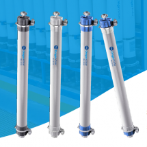 OWUF 外置式超滤膜组件突破了聚偏氟乙烯(PVDF)超滤膜超亲水性改性和膜组件全新可拆卸结构设计,解决了超滤膜应用过程中膜污染的难题,具有更高的截污量和更大的过滤面积,保证系统长期稳定运行。是国家“十二五”水专项重大成果之一,荣获“中关村新技术新产品”、“北京市新技术新产品”等荣誉。成功应用于我国规模最大的膜法海水淡化项目——青岛董家口海水淡化工程(10 万t/d)。